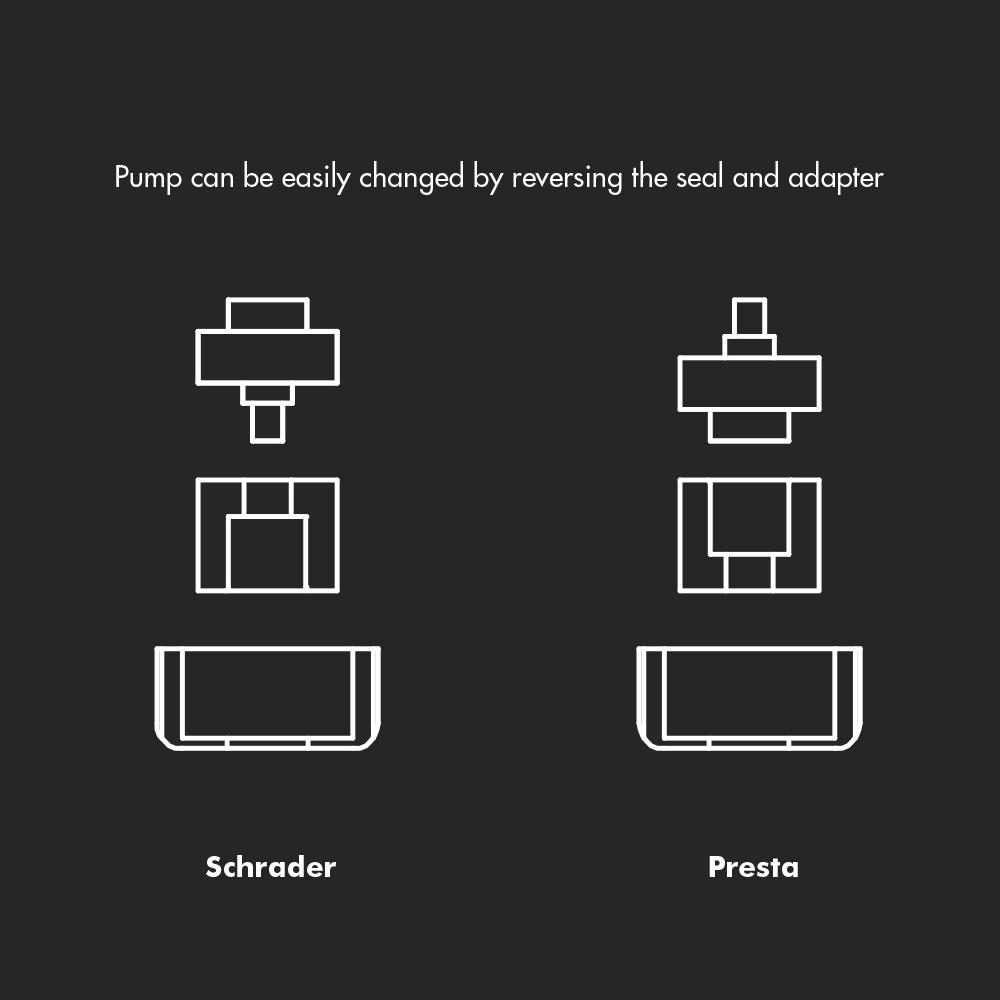 Accepts Presta or Schrader valves.
